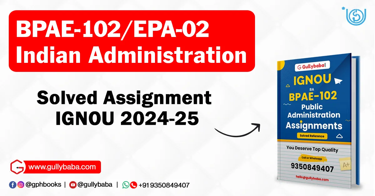 All the students of Indira Gandhi National Open University or IGNOU who are pursuing Bachelor Degree Programme (BDP) or Bachelor of Arts (BA) and have selected Public Administration Subject as Elective Course (Course Code: BPAE-102/EPA-02) in Indian Administration as their course, have to submit IGNOU BPAE-102/EPA-02 solved assignment for the batch 2022-23 in English or Hindi medium.