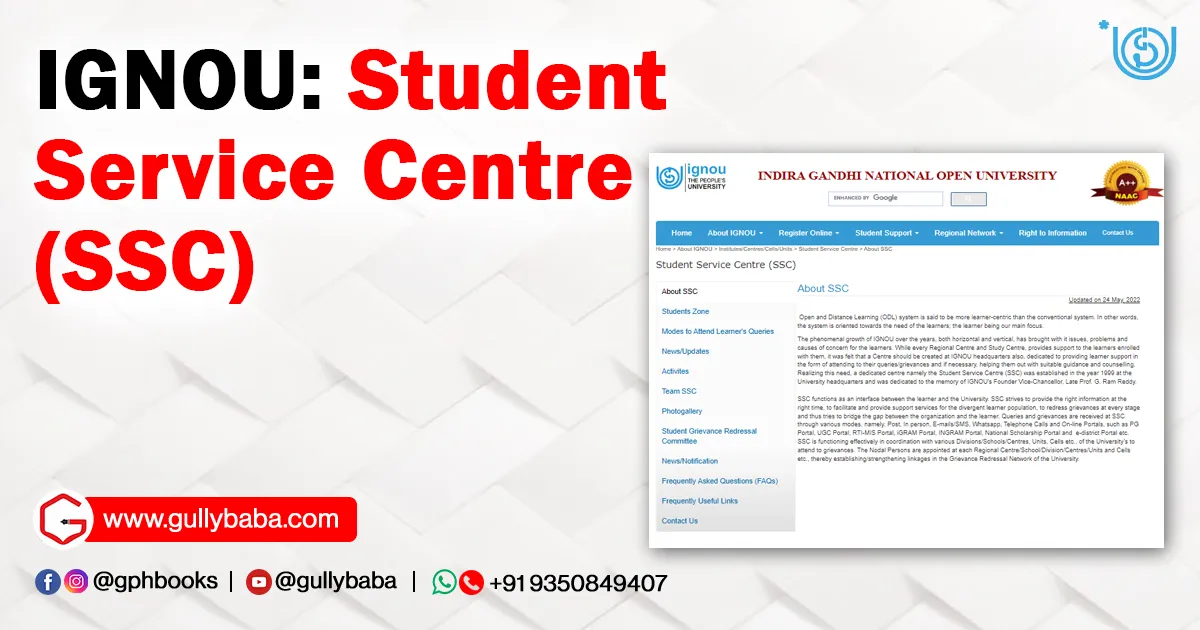 With the rapid growth of IGNOU, a Student Centre was needed where students could get answers to their questions and concerns. The IGNOU Student Service Centre (SSC) was born of this need. Students who are facing difficulties or find it difficult to receive regular updates can visit the official websites of IGNOU or SSC for assistance.