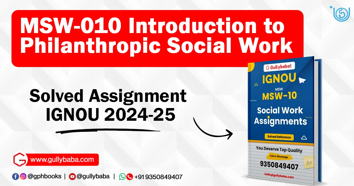 All the students of Indira Gandhi National Open University or IGNOU who are pursuing Master Degree Programme or Master of Arts (MA) and have selected Social Work Subject as Specialization Course (Course Code: MSW-010) in Introduction to Philanthropic Social Work as their course, have to submit IGNOU MSW-010 solved assignment for the batch 2022-23 in English or Hindi medium.
