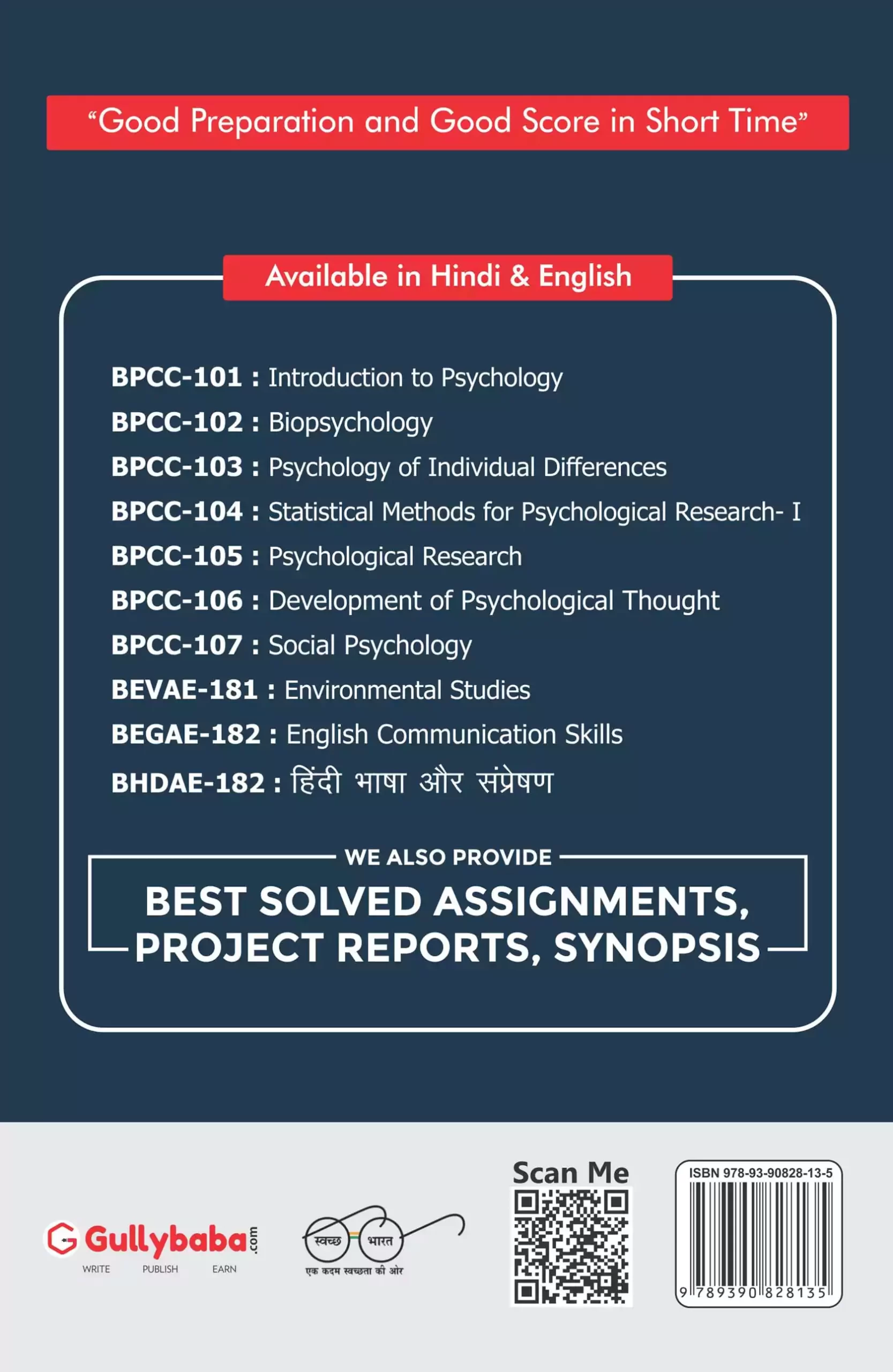 Part of Semester-II, BPCC–104 imparts knowledge about how personality, inter-and intra-individual differences affect individuals. BPCC–104 include individual differences, character, assessment, concept, theories, intelligence assessment, emotional intelligence, aptitude, Indian thoughts in psychology, differences between Indian and Western psychology, motivation, creativity, and practical guidelines