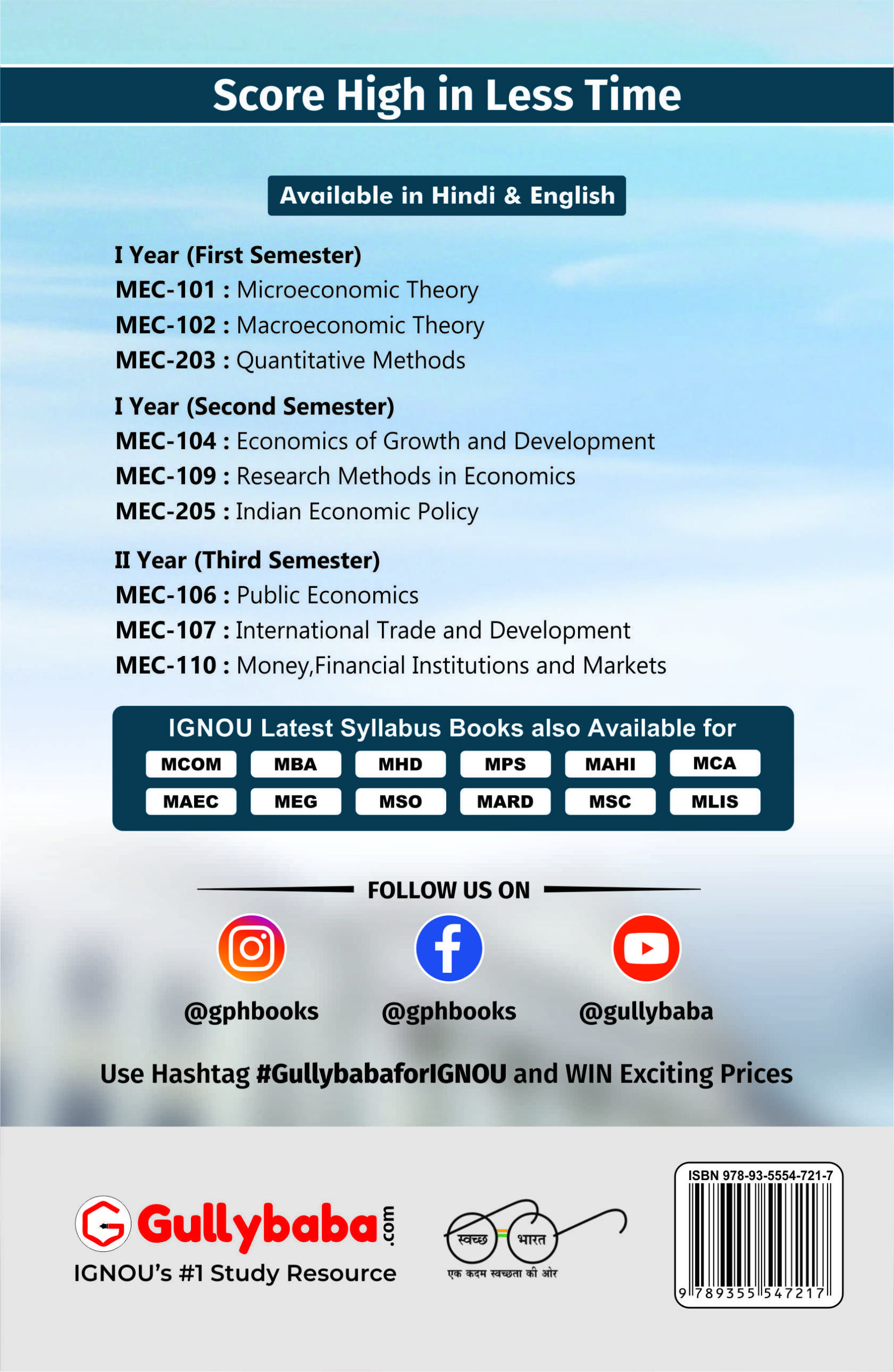 Looking for the best IGNOU MEC-110 Money, Financial Institutions and Markets Study Material and Help Books? Our IGNOU MEC-110 Guide Books cover all important topics, solved previous year question papers, easy-to-understand explanations, in simple & easy language, along with chapter-wise summaries, high-quality answers, and the latest syllabus coverage to help you score an A+ grade. Crack IGNOU exams effortlessly and join millions of IGNOU students who trust Gullybaba Books for success!