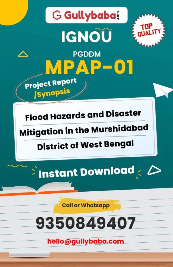 Floods are the most ubiquitous, recurring, widespread and disastrous natural phenomenon and hazards in the world. India is one of the worst flood affected countries after Bangladesh. Nearly 1/8th of the geographical area of India is flood prone. The state of west Bengal falling within the Brahmaputra- Ganga-Padma/ Bhagirathi and Subarnrekha river system is highly prone to floods and this has become an annual feature, though of varying intensities and magnitudes.