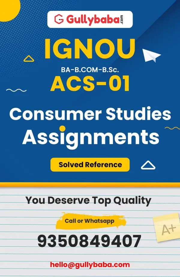 IGNOU ACS-01 Consumer Studies - IGNOU Solved Assignment (Latest)
