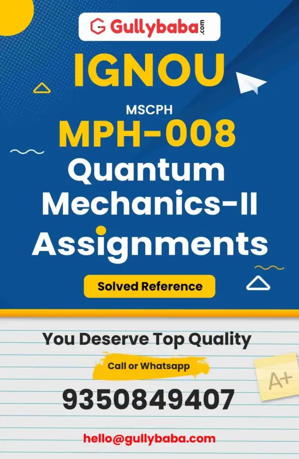 IGNOU MPH-08 Quantum Mechanics II - IGNOU Solved Assignment (Latest)